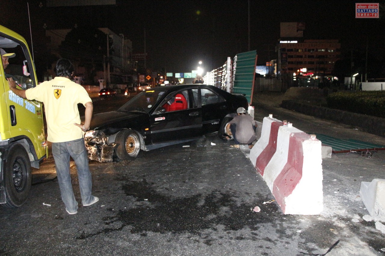 На Сукхумвите, неподалеку от сои Кхао Ной в восточной Паттайе, произошло ДТП с участием автомобиля Хонда Цивик. Машина пробила центральной барьер, в результате действий водителя, который пытался избежать столкновения с мотоциклом, внезапно выскочившим с прилегающей дороги.