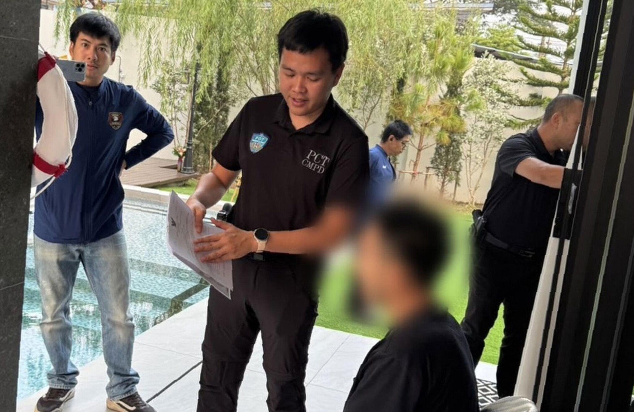 Получив ордер от Провинциального суда Чиангмае, сотрудники Целевой группы по борьбе с киберпреступностью совместно с полицейскими участка Мае Пинг провели обыск в доме Криса. В ходе обыска были изъяты 11 небольших камер с дистанционным управлением, два мобильных телефона — iPhone 16 Pro и Vivo Y29 — а также ноутбук HP, который содержал множество видеозаписей и изображений женщин, снятых во время их посещения туалетов.