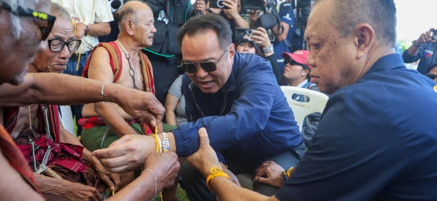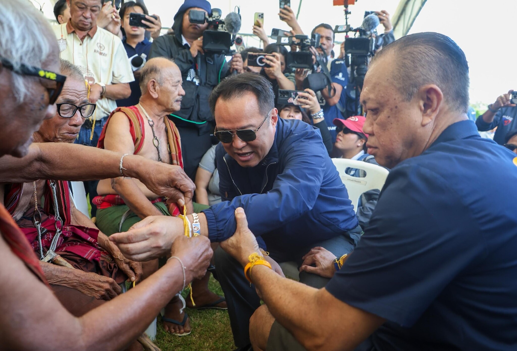 Ежегодная церемония, проведённая на фоне его футбольного стадиона «Чанг Арена», рассчитанного на 32 600 мест, включала длинный стол с подношениями: свиную голову, безалкогольные напитки и сотни бананов для кормления почти дюжины слонов. Невин Чидчоб, одетый в шорты, кроссовки и тёмно-синюю рубашку с короткими рукавами, в конце концов пригласил премьер-министра сесть рядом с ним, подняв его за руку, пока махауты повязывали жёлтые нити благословения вокруг запястья Анутина Чарнвиракула. «Сделайте его премьер-министром ещё на четыре года, — сказал Невин Чидчоб погонщикам. — Выиграйте выборы».