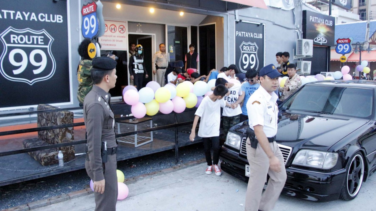 Полиция Паттайи продолжает активную борьбу с заведениями, репутация которых оставляет желать лучшего. В этот раз очередной целью полицейских стал бар Route 99 (Роут 99), расположенный на Сукхумвите в центральной части Паттайи. Рейд был стремительным: оперативники окружили здание и перекрыли все выходы.