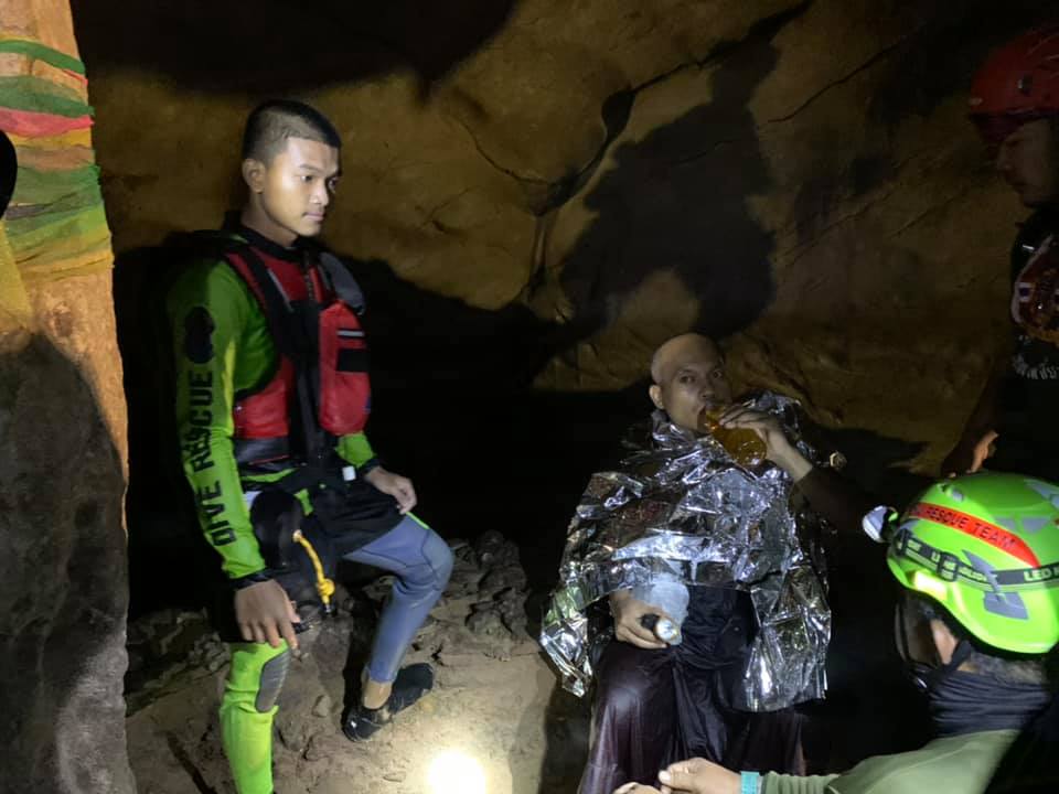 Спасательное подразделение организовало поисковую операцию, однако вынуждены были отменить её из-за повышения уровня воды. Четыре дня пришлось провести монаху в пещере, прежде чем водолазы смогли добраться до того места, где он находился.