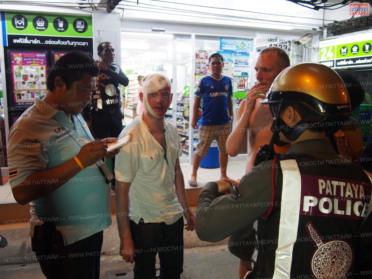 Продавец супермаркета рассказал, что явно нетрезвый фаранг забежал в магазин с криками о помощи. Вслед за ним в помещение влетели трое человек. Они выволокли англичанина на улицу и принялись избивать. Причины конфликта пока не установлены. Полиция изучает записи камер видеонаблюдения в надежде установить личности нападавших.