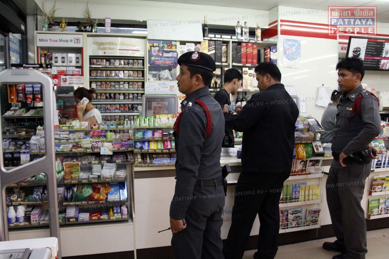 В воскресенье вечером, на окраине Паттайи было совершено вооруженное ограбление магазина «7-Eleven» (Севен-Элевен). Сотрудница торгового павильона рассказала прибывшим на место полицейским, что в магазин вошел мужчина в закрытом мотоциклетном шлеме с темным стеклом. Угрожая продавцам ножом, грабитель потребовал передать ему деньги из кассы. Получив 1 500 батов, он скрылся на своем мотоцикле.