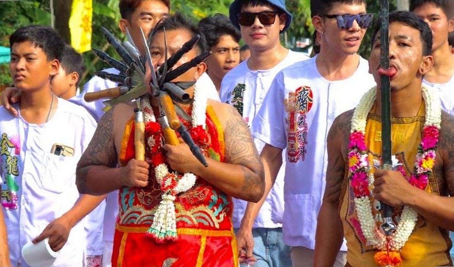 Как и каждый год, мероприятие объединило глубокую преданность и впечатляющие проявления веры. В малых паланкинах, известных как «Таи Пи», несли изображения различных божеств, а в больших паланкинах, или «Та Лиан», находилось особо почитаемое божество Киеу Онг Таи Те. Медиумы, как мужчины, так и женщины, демонстрировали акты самоистязания, пронзая щёки и тела острыми предметами — освящёнными ножами, мечами и ритуальными шампурами. Это символизировало их жертвоприношение и поглощение несчастий от имени других.