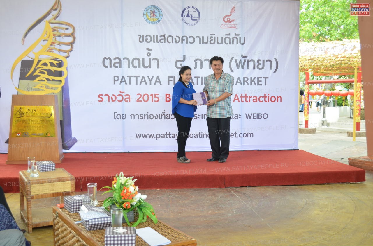 Госпожа Warida Seeueng (Варида Сиуенг), действующий руководитель Плавучего рынка, получила награду из рук министра культуры, господина Khun Gopkan (Кун Гопкан). На церемонии награждения присутствовали заместитель мэра Паттайи — Ronnakit Aegasing (Ронакит Аегасинг), представитель Туристического Управления Таиланда в Паттайе, госпожа Suladda Sarutilawan (Сулада Сарутилаван), начальник полиции Хуай Яй, господин Anan Purahong (Анан Пурахонг) и начальник полиции Бангламунга — господин Shakorn Kanjanawatta (Сакорн Каньянавата).
