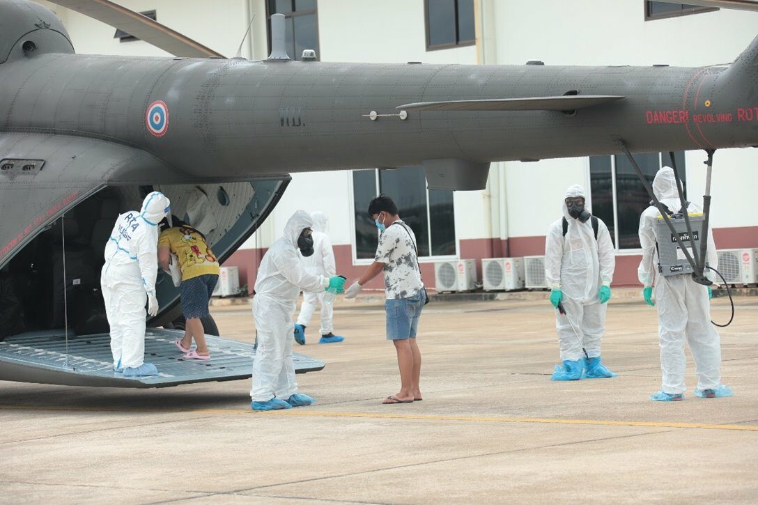 Военную технику для транспортировки больных в Таиланде начали использовать с 29 июля. Армия Таиланда перебрасывает инфицированных людей с лёгкими симптомами в их родные провинции. На сегодняшний день транспортная авиация доставила 84 пациента четырьмя рейсами в провинции Нан и Накхонпханом.