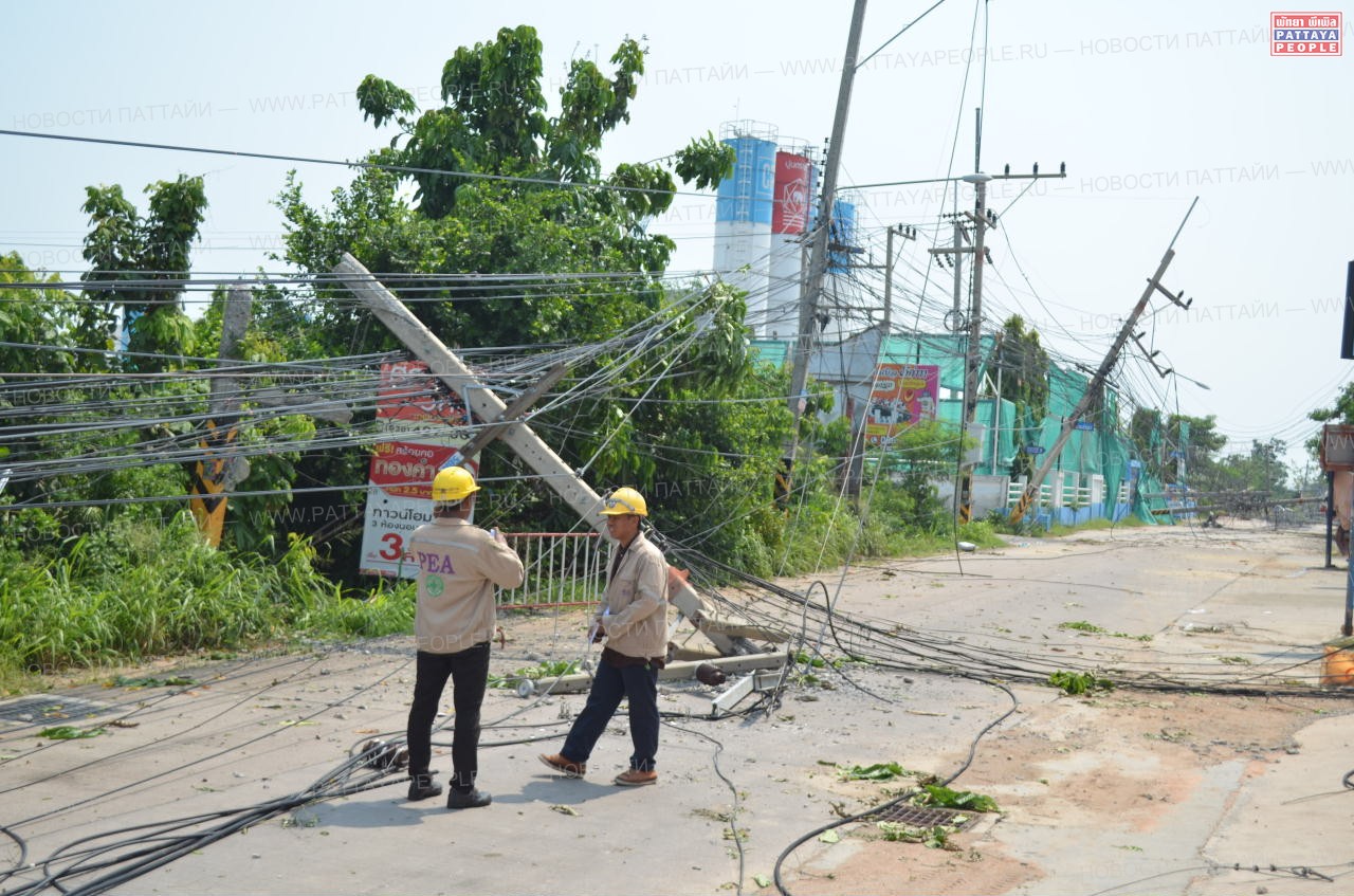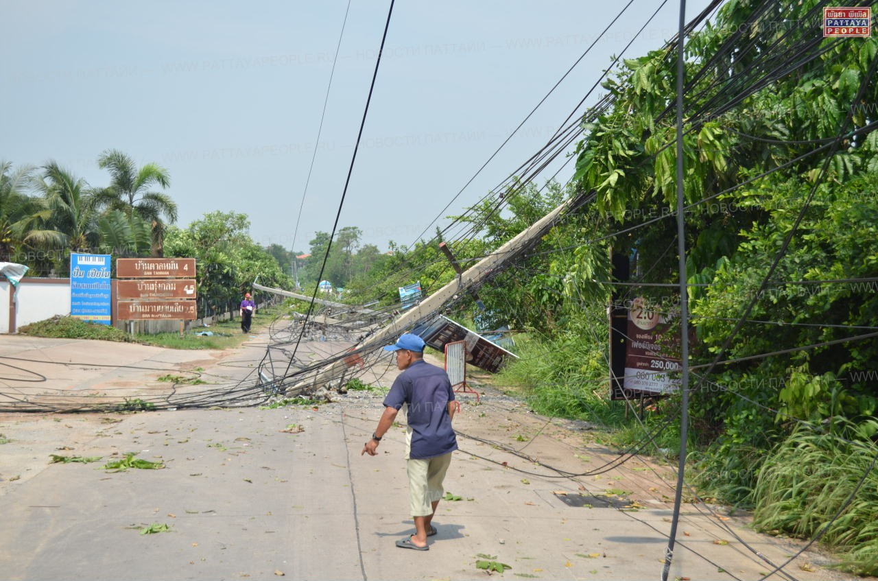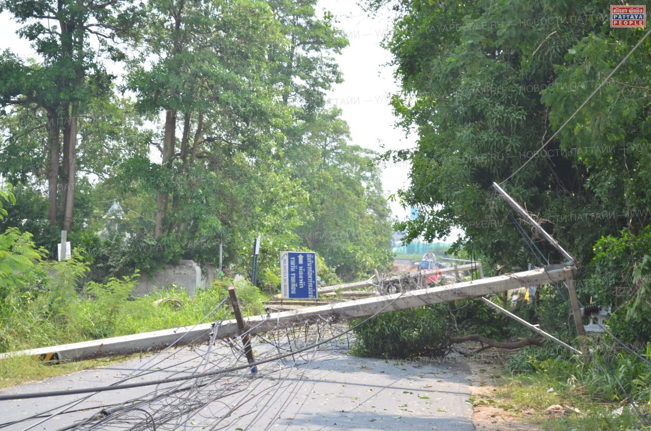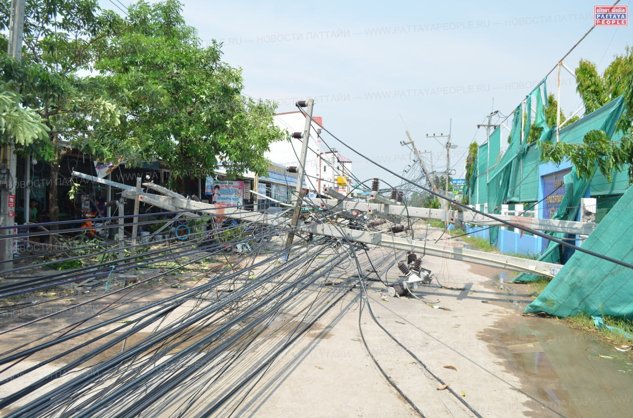 Особенно досталось во время шторма Восточной Паттайе: 32 электрических провода были разорваны и валялись на дороге в лужах воды. Оценка причиненного ураганом ущерба приблизилась к отметке в 1 млн батов.