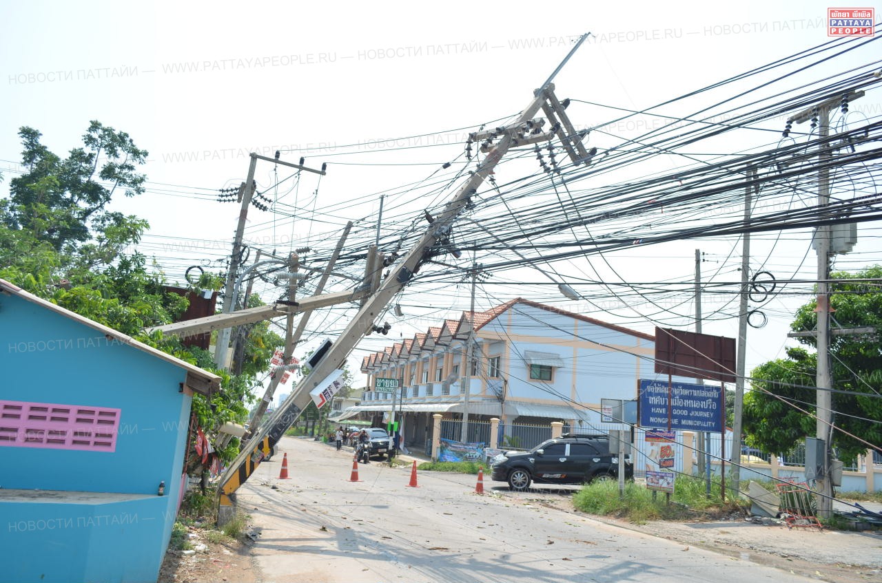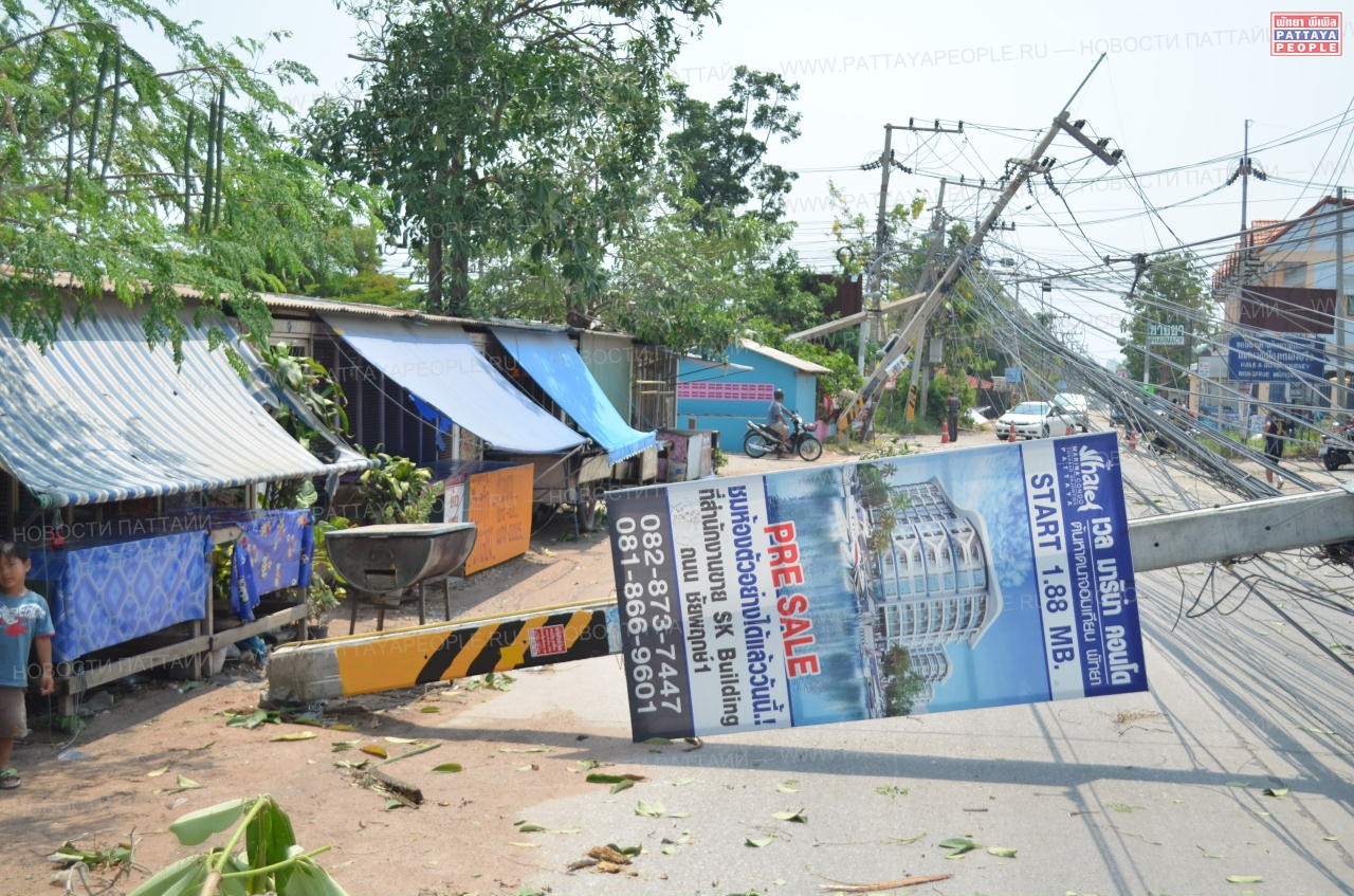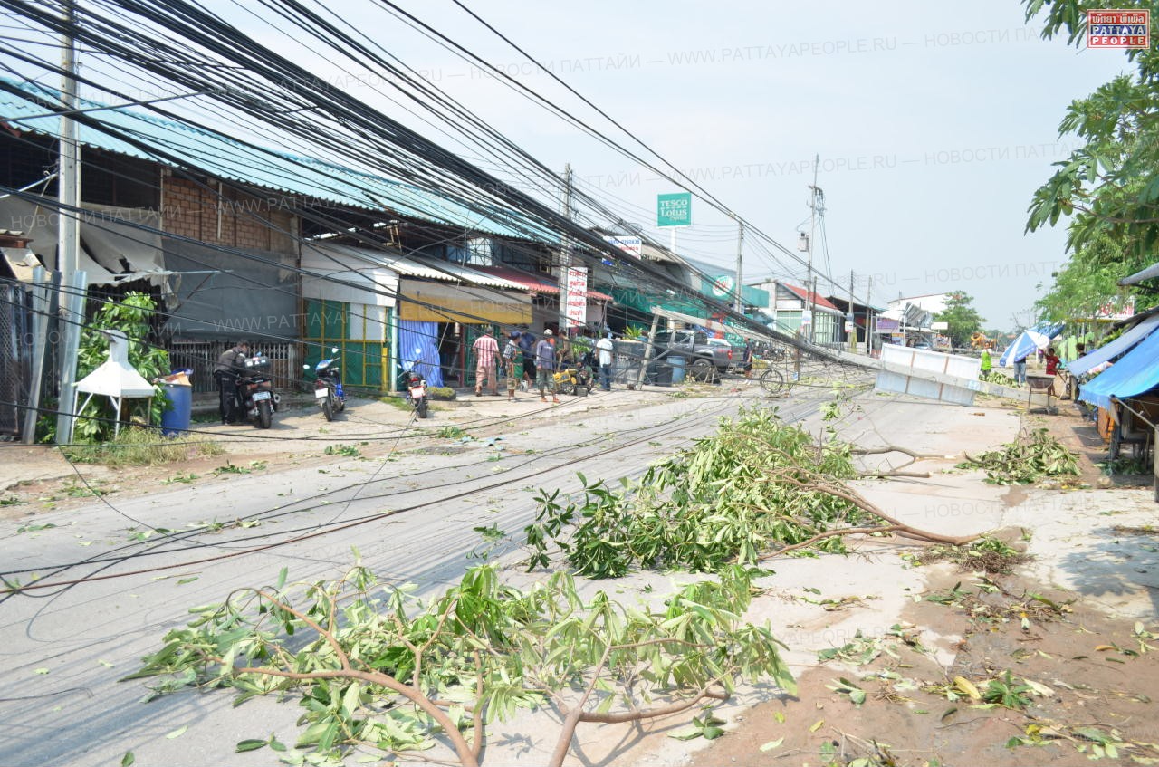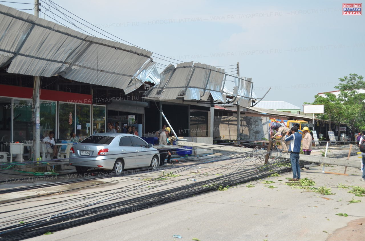 Особенно досталось во время шторма Восточной Паттайе: 32 электрических провода были разорваны и валялись на дороге в лужах воды. Оценка причиненного ураганом ущерба приблизилась к отметке в 1 млн батов.