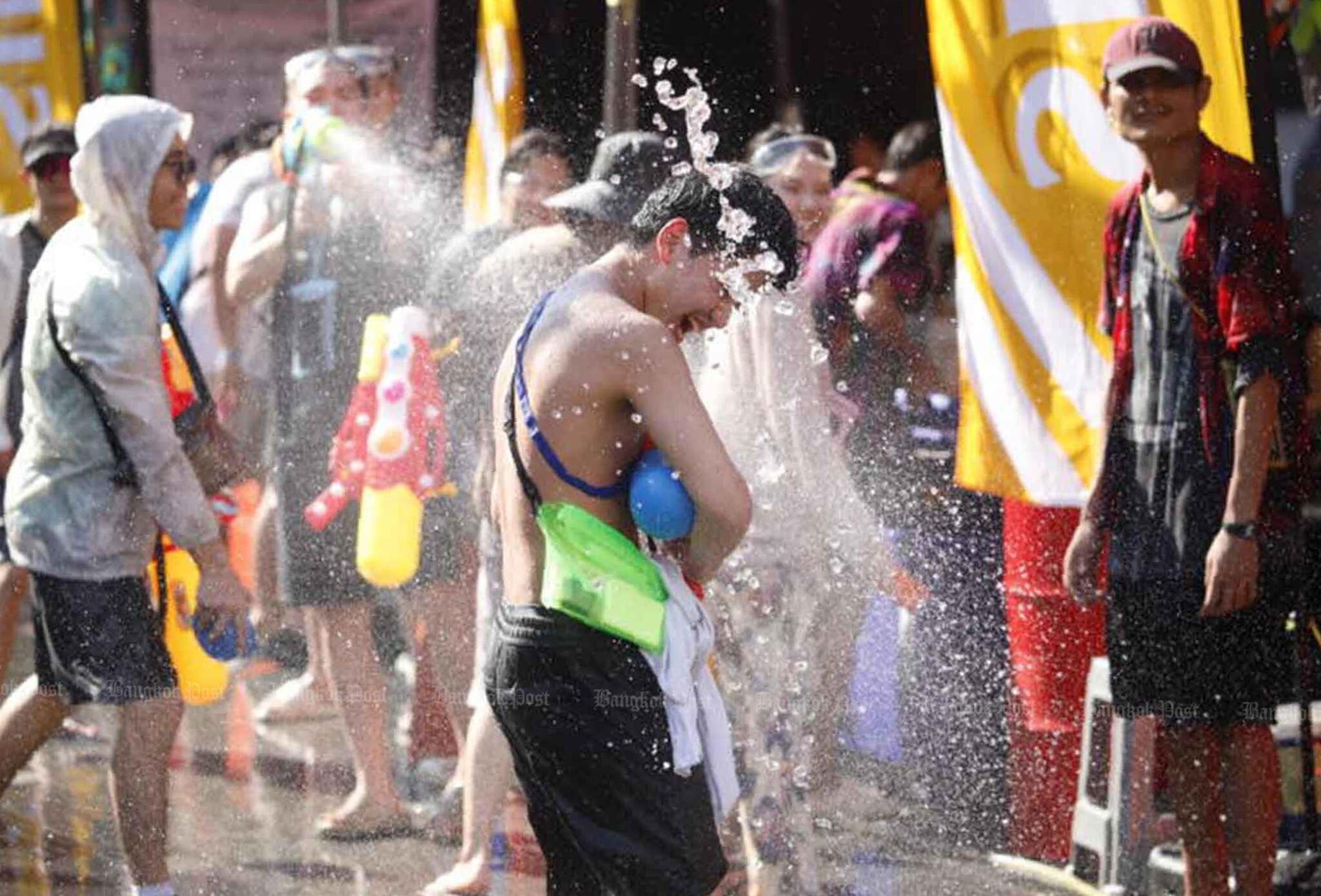 В Патонге, особенно вдоль Бангла-роуд, огромные толпы тайских и иностранных туристов собрались в первый день Сонгкрана, чтобы принять участие в водных баталиях на фоне изнуряющей жары. Улицы наполнились гостями, вооружёнными водяными пистолетами, а многочисленные продавцы предлагали принадлежности для водных игр и напитки. Для поддержания порядка и помощи туристам в районе были задействованы сотрудники туристической полиции и местные чиновники.