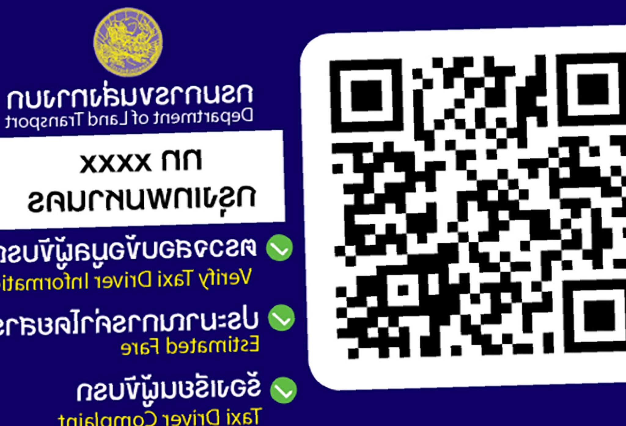 Второй QR-код, синего цвета, будет размещён на левом заднем окне пассажирской двери. Он предназначен непосредственно для пассажиров и предоставляет широкий спектр функций. С его помощью можно будет узнать подробную информацию о водителе, оценить качество предоставляемых услуг, оставить положительный отзыв или подать жалобу непосредственно в Департамент наземного транспорта. Кроме того, этот код позволит предварительно рассчитать стоимость поездки до её начала или во время движения, что снижает вероятность ценовых разногласий.