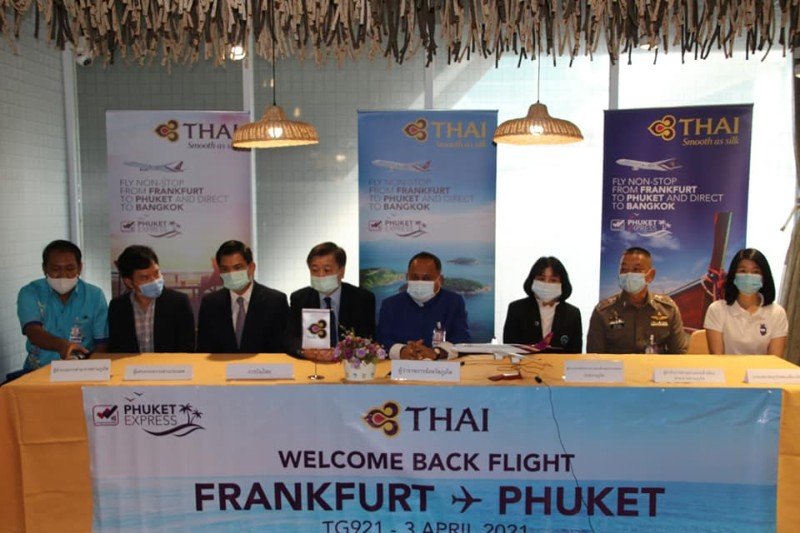 В субботу, 3 апреля, первый рейс Thai Airways из Франкфурта в Германии — рейс TG921 — приземлился в аэропорту Пхукета, впервые с тех пор, как в начале прошлого года начался запрет на международные поездки, когда разразилась пандемия.