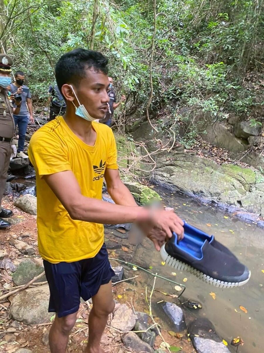 Осужденный накрыл тело женщины чёрным пластиковым пакетом, который нашёл неподалёку, и засыпал камнями. Обыскав сумку Николь, преступник украл 300 батов наличными.