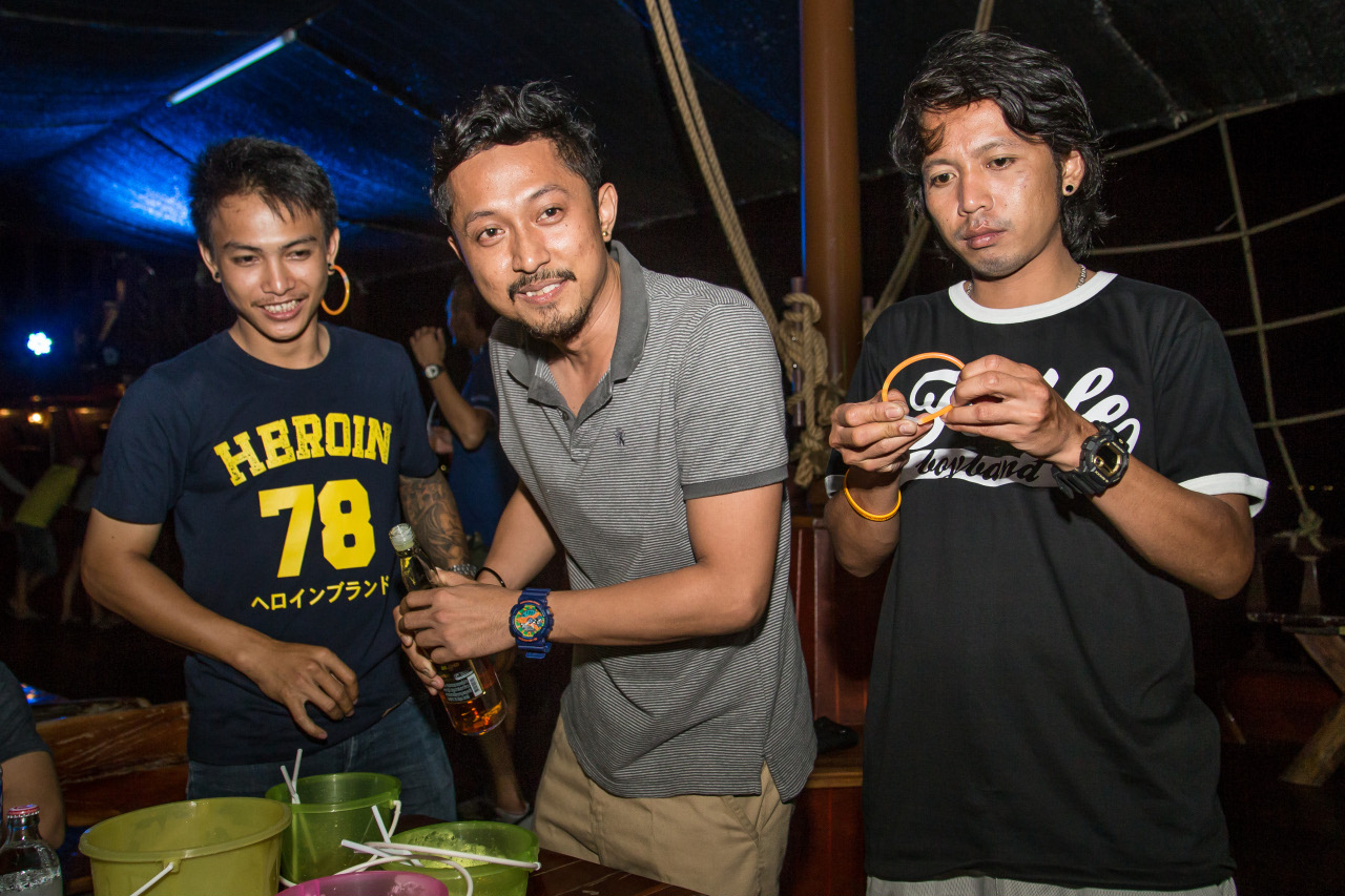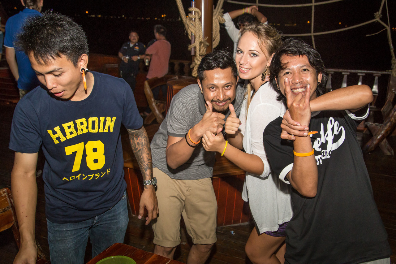 150 человек посетило корабельную вечеринку. Публика присутствовала разная, среди большинства русских местных жителей Паттайи на борту были и тайские компании, которые с удовольствием потягивали литры алкоголя и танцевали «невероятные» танцы. По крайне мере, такие танцы мы видели впервые. И кто говорит, что русские самая пьющая нация?! В итоге по количеству выпитого среди русских и тайцев на Full Moon Boat Party, счёт равный!